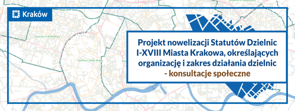 W dniach 13 lipca do 14 sierpnia 2020r. trwać będą konsultacje społeczne dotyczące projektu uchwały Rady Miasta Krakowa w przedmiocie nowelizacji Statutów Dzielnic I-XVIII Miasta Krakowa, określających organizację i zakres działania dzielnic.
