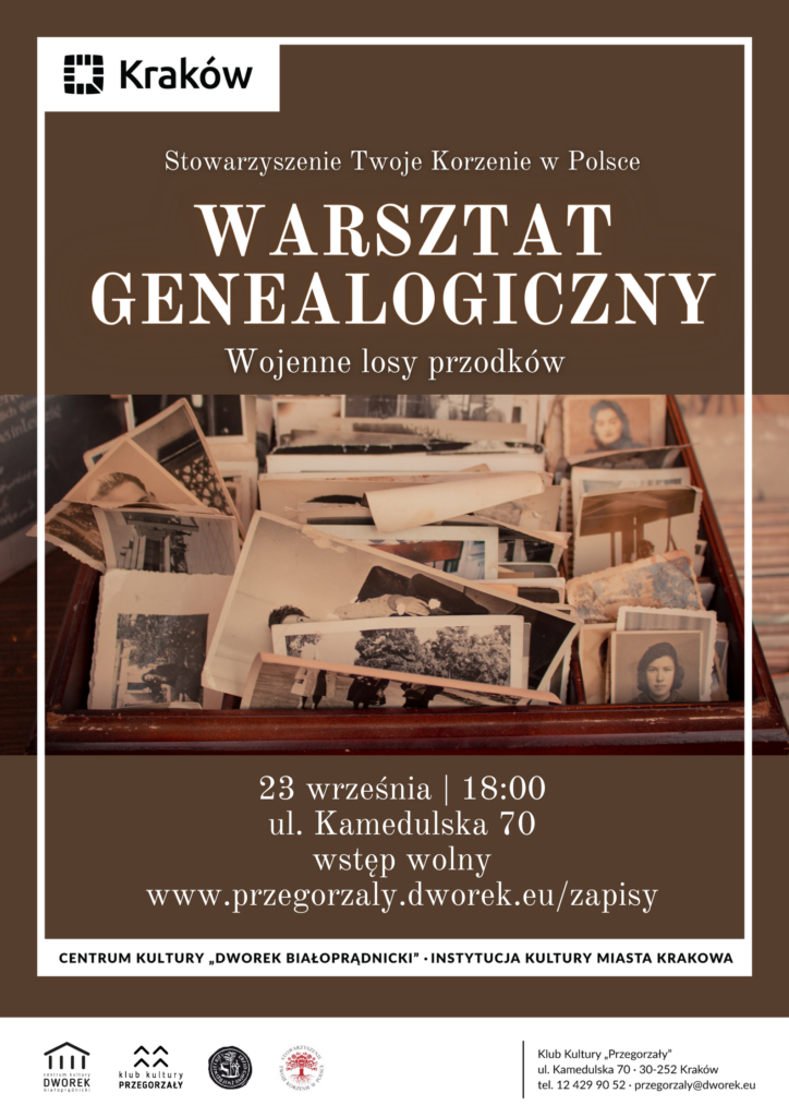 Warsztat zostanie poprowadzony przez Stowarzyszenie Twoje Korzenie w Polsce, a towarzyszyć mu będzie wystawa „Glinnik, miejsce grozy w okupowanym Krakowie”.