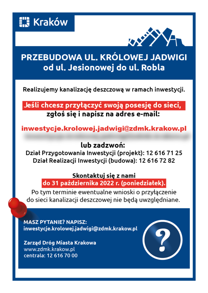 Informacja dotycząca przyłączy – ul. Królowej Jadwigi