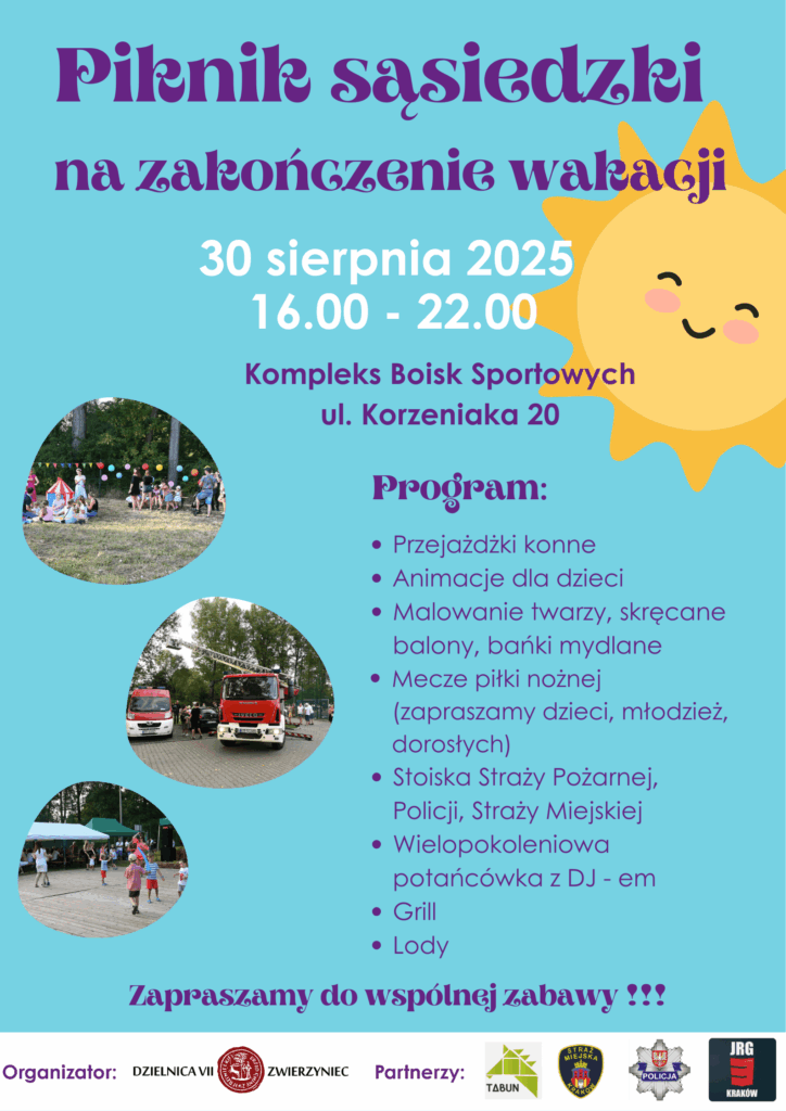 Zapraszamy na piknik sąsiedzki – już 30 sierpnia 2025 w godzinach 16:00 – 22:00 na ul. Korzeniaka 20.