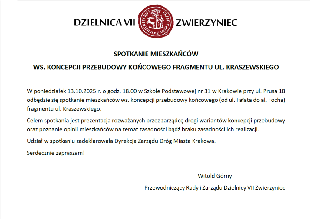 Prezydent Miasta Krakowa zaprasza mieszkanki i mieszkańców Krakowa do udziału w prowadzonych od 29 września do 24 października 2025 r.