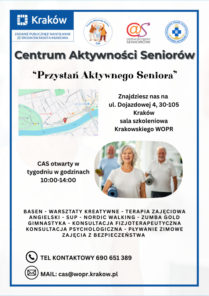 Już 6 października działalność rozpoczyna Centrum Aktywności Seniorów „Przystań Aktywnego Seniora”. Centrum znajduje się na ul. Dojazdowej 4 w Krakowie.