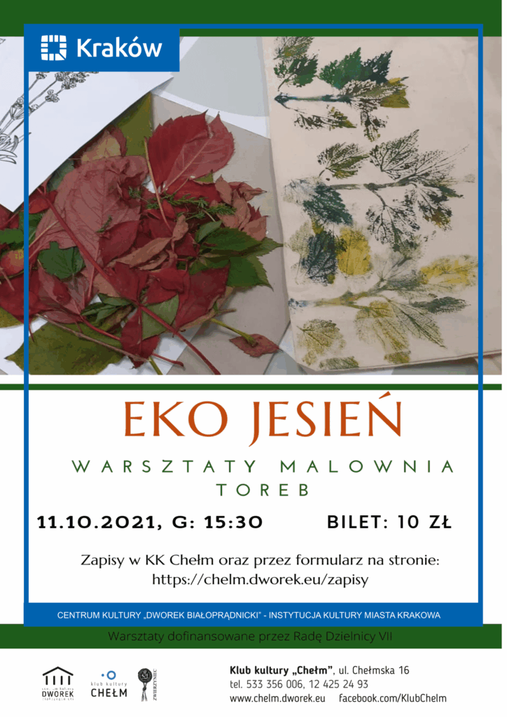 Zapraszamy na ekologiczne warsztaty malowania toreb z wykorzystaniem jesiennych liści. Każdy uczestnik będzie mieć okazję wykonać własnoręcznie rysunek/malunek na płóciennej