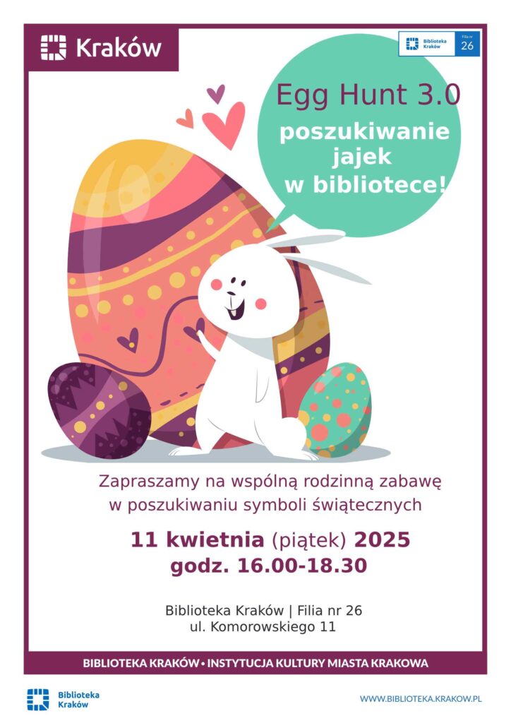 Zapraszamy na wspólną, rodzinną zabawę w poszukiwaniu symboli świątecznych – 11 kwietnia 2025 godz. 16.00 – 18:30. Szczegóły po kliknięciu