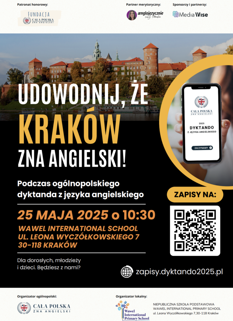 Ogólnopolskie dyktando „Cała Polska zna angielski” – już 25 maja o godzinie 10:30 w Wawel International School przy ul. Wyczółkowskiego