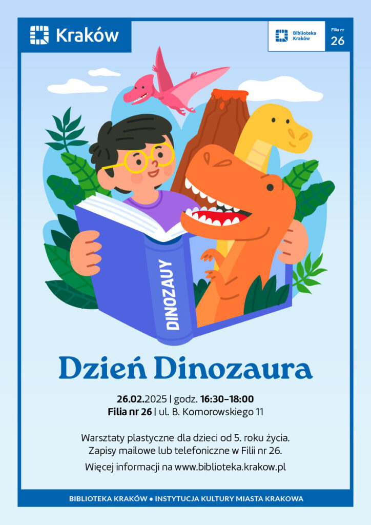 Serdecznie zapraszamy na warsztaty plastyczne dla dzieci od 5 roku życia – Dzień Dinozaura Już 26.02.2025, w godzinach 16:30 –