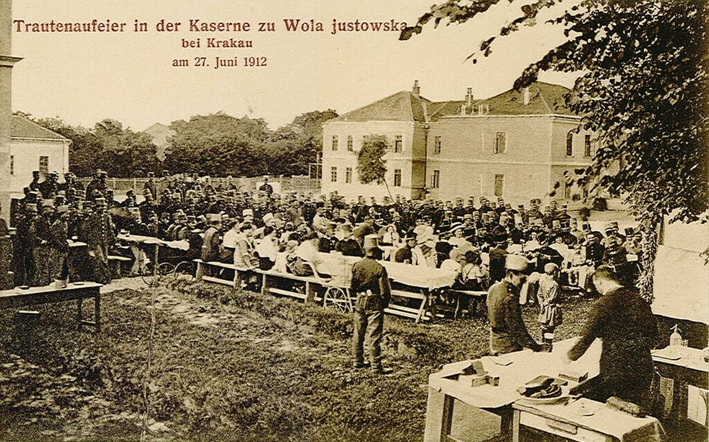 fot. Święto w koszarach Rozważana już po trzecim rozbiorze idea budowy Twierdzy Kraków, nabrała realnych kształtów dopiero po wydarzeniach Wiosny Ludów