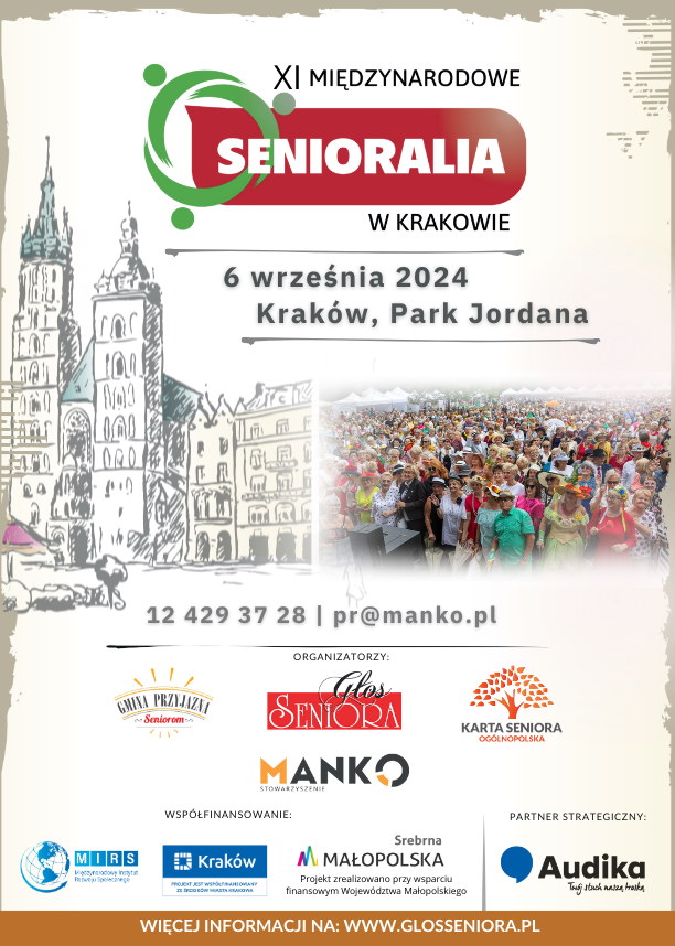 Stowarzyszenie Manko – Głos Seniora oraz Międzynarodowy Instytut Rozwoju Społecznego z radością zapraszają na XI Międzynarodowe Senioralia w Krakowie. Wydarzenie odbędzie się 6 września 2024
